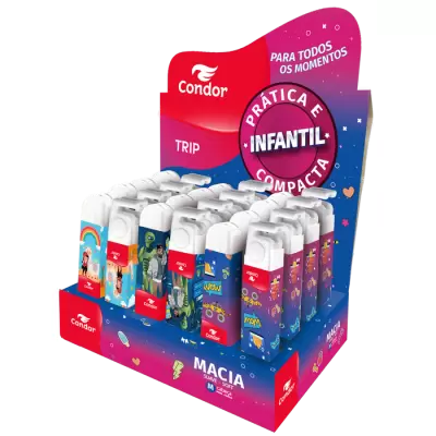 Ideal em qualquer ocasião: escola, viagem, acampamento, praia, festa do pijama, em qualquer lugar a saúde bucal dos pequenas fica em dia. Super prática, no uso, o estojo se transforma no cabo, e para guardar, o cabo se transforma no estojo. Fácil, não é mesmo? Com cerdas macias e o limpador de língua que ajuda a eliminar as bactérias. Disponível na versão Macia, com 3 opções de estampas que decoram o estojo.