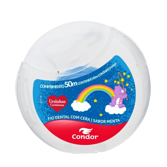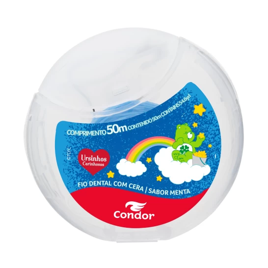 O cuidado bucal ganha mais charme com o Fio Dental Condor Ursinhos Carinhosos! Com 50 metros de comprimento e sabor suave de menta, ele desliza com facilidade entre os dentes, promovendo higiene completa. São 4 rótulos colecionáveis com os Ursinhos mais queridos para deixar o momento da escovação ainda mais especial.