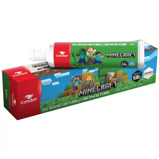 O Gel Dental Kids+ Minecraft, possui a proteção total do flúor, com 1.100 ppm de concentração.