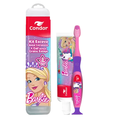 KIT INFANTIL KIDS BARBIE ESCOVA + GEL DENTAL GRÁTIS ESTOJO