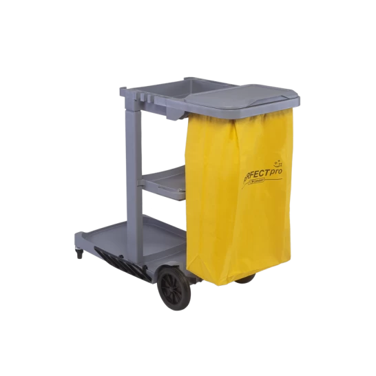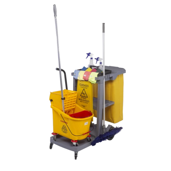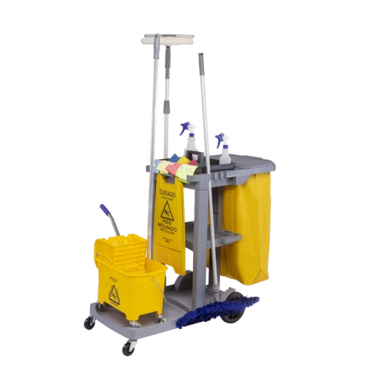 REF 973475 REF 973476Carro funcional compacto equipado com tampa e asa para transporte e organização de equipamentos de limpeza.