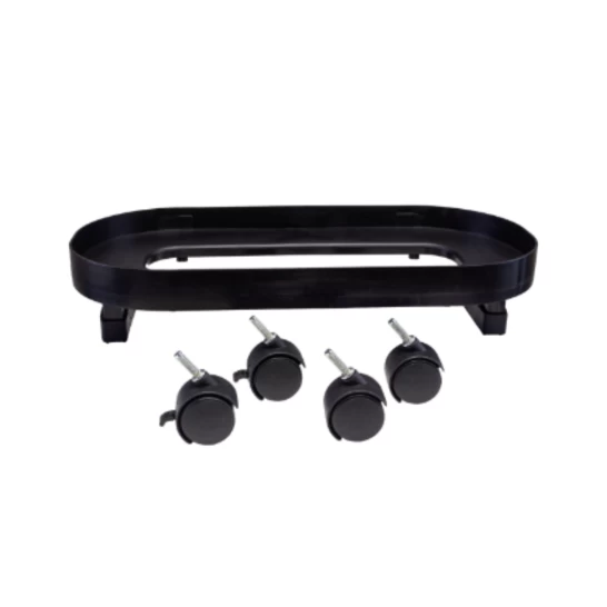 Plataforma com rodízios 360° que facilitam a locomoção. Consta com sistema de freio permite maior aderência ao piso enquanto em uso do cesto giratório.