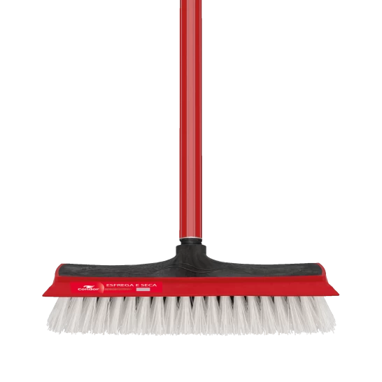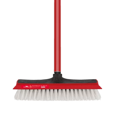 Produto 2 em 1, com escovão e rodo. Ideal para esfregar pisos e puxar área para finalizar a limpeza.