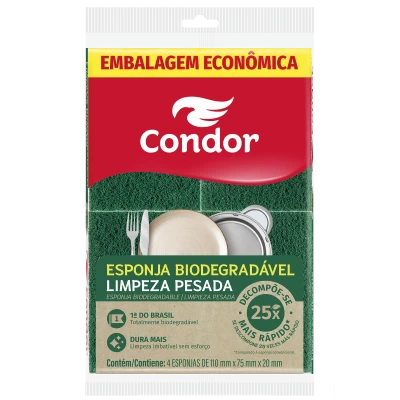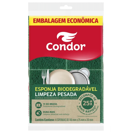 1ª Esponja 100% Biodegradável do Brasil. Decompõe-se 25X mais rápido e sem perder absolutamente nada em desempenho! Chega de esperar centenas de anos para cuidar do futuro! Deve ser descartada junto com os resíduos orgânicos que vão para o aterro. Testado e certificado conforme método de análise ASTM D 5511-11.