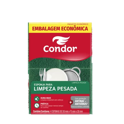 Esponja multiuso com tecnologia antiviral (aplicada em sua manta abrasiva) e agente antibacteriano (aplicado em sua espuma). Com manta mais abrasiva ideal para limpeza efetiva em menos tempo. Sugerida para limpeza geral. Embalagem com 4 unidades tipo promopack (Leve 4 Pague 3).