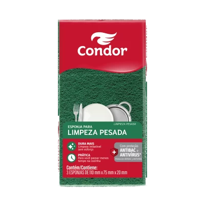 Esponja multiuso com tecnologia antiviral (aplicada em sua manta abrasiva) e agente antibacteriano (aplicado em sua espuma). Com manta mais abrasiva ideal para limpeza efetiva em menos tempo. Sugerida para limpeza geral. Embalagem com 3 unidades tipo promopack (Leve Mais Por Menos).