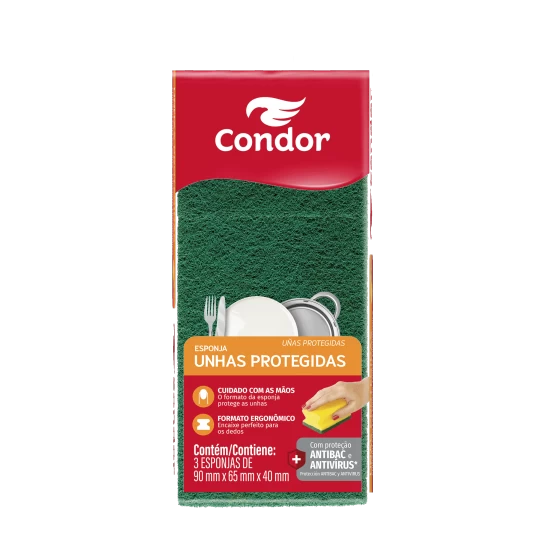 Esponja multiuso com tecnologia antiviral (aplicada em sua manta abrasiva) e agente antibacteriano (aplicado em sua espuma). Com espuma mais alta e com encaixe perfeito para as mãos. Com manta mais abrasiva, ideal para limpeza efetiva em menos tempo. Sugerida para limpeza geral. Embalagem com 3 unidades tipo promopack (Leve Mais Por Menos).