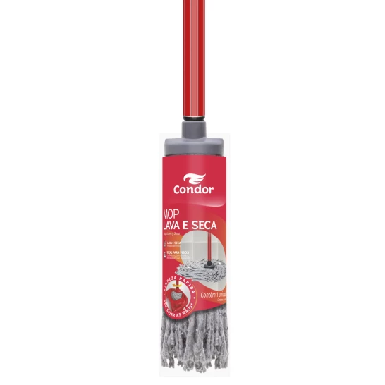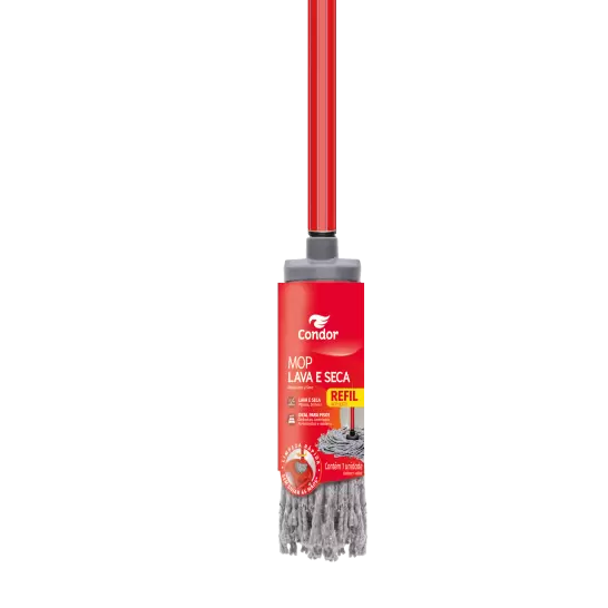 O mop lava e seca possui um conjunto de balde 12 litros com cesto escorredor e refil de algodão. Muito fácil de usar, basta umeceder a cabeleira na misturinha para limpeza (água com produto químico, no balde), girar o mop sobre o cesto escorredor (movimento rotacional), e está pronto para o uso. Ideal para limpeza úmida de pisos frios (por exemplo banheiros), sintéticos e madeira. Perfeito para o dia de faxina. O refil de algodão pode ser substituído facilmente.