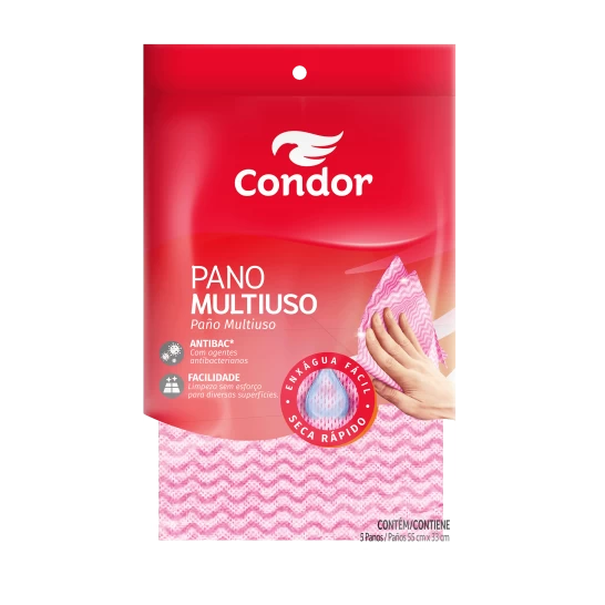 Pano de limpeza multiuso, com agente antibacteriano e de alta absorção. Ideal para pia e fogão.
