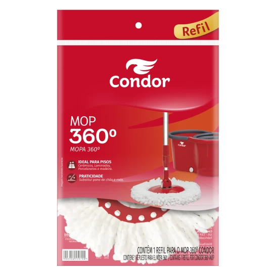 Refil para uso no mop 360 lavável em máquina e pode ser substituído facilmente.