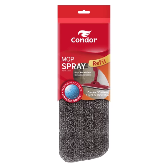 Refil para uso no mop spray com tanque na base e mop spray com tanque exterrno. O refil de microfibra é lavável em máquina e pode ser substituído facilmente.