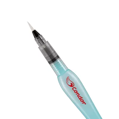 Para usar, basta encher o reservatório com água, apertar suavemente e deixar que a água escorra para a ponta misturando com a tinta ou pigmento.